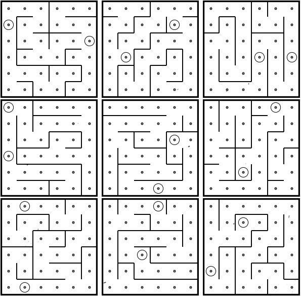 Trouvez le labyrinthe dont les repères circulaires correspondent. Le démineur doit amener le point blanc jusqu'au triangle rouge en utilisant les boutons en forme de flèche. Attention : ne traversez pas les lignes du labyrinthe. Ces lignes n'apparaissent pas sur la bombe. |